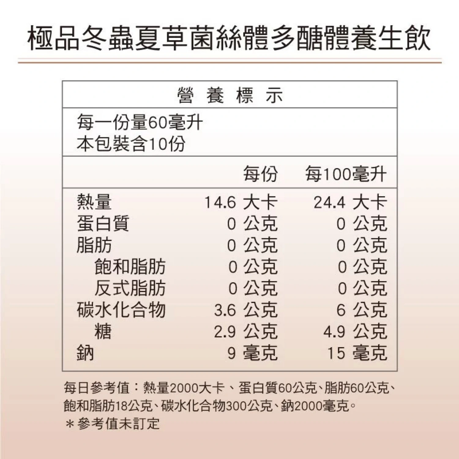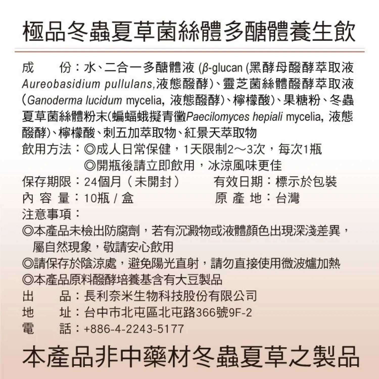 冬蟲夏草菌絲體〔多醣體養生飲〕(10瓶/禮盒)